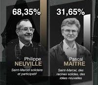 À l’issue de ce premier tour, l’équipe municipale actuelle est la suivante : Philippe NEUVILLE (SAINT-MARCEL SOLIDAIRE ET PARTICIPATIF) Résultat…