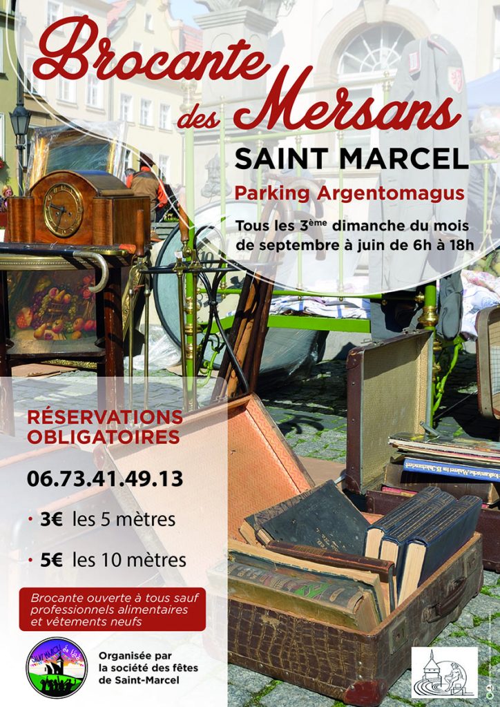 Le comité des Fêtes de Saint-Marcel organise chaque 3ème dimanche du mois une brocante sur la place Arlette LEROI-GOURHAN.